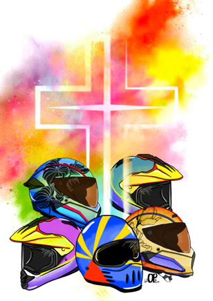 avec des photos de nos amis motards partis trop tôt … Un hommage dans la prière, le recueillement…
